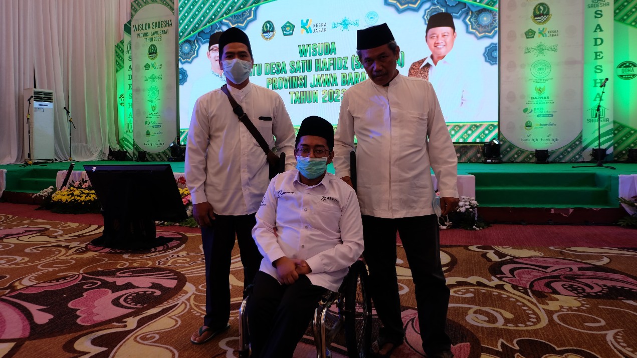 Ada satu sosok hafiz (penghafal Al-Qur’an) istimewa yang terlihat mencolok pada prosesi wisuda akbar 2.000 peserta program Satu Desa Satu Hafidz (Sadesha) di salah satu hotel di Soreang Kabupaten Bandung, Senin, (31/1) yang digelar Pemerintah Provinsi Jawa Barat bekerja sama dengan Pengurus Wilayah Jamiyyatul Qurra’ wal Huffazh Nahdlatul Ulama (JQHNU) Jabar.