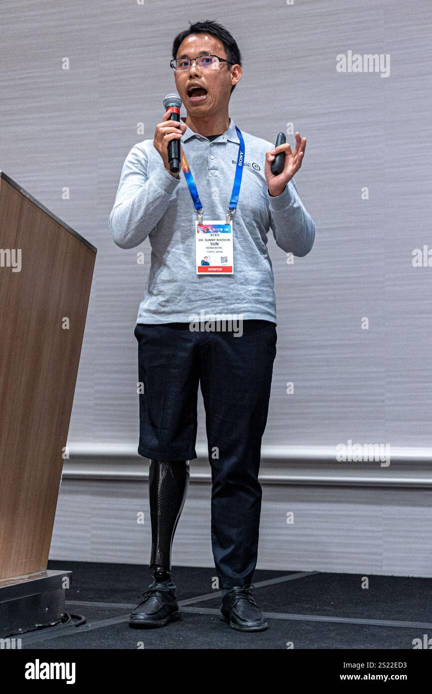 Melalui startup BionicM yang didirikan pada 2018 di Shenzhen, ia menciptakan lutut prostetik bionik yang mampu merespons gerakan pengguna layaknya otot alami—dilengkapi sensor dan motor untuk membantu berjalan, bahkan di tangga, serta tahan jatuh. Inovasinya mendapat penghargaan Red Dot Best of the Best 2020 atas desain dan fungsionalitasnya yang revolusioner. Karena produksi masih skala kecil, biaya tiap pasang prostetik sekitar 300.000 yuan—lebih rendah dari harga pasar umum—namun Sun berupaya menggalang pendanaan agar perangkatnya makin terjangkau bagi lebih banyak penyandang disabilitas.